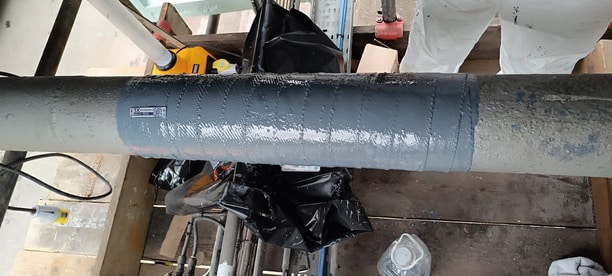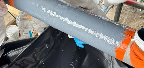 1. Resin application: A first layer of 3X bi-component epoxy resin was applied to provide strong adhesion between the pipe and the composite material.