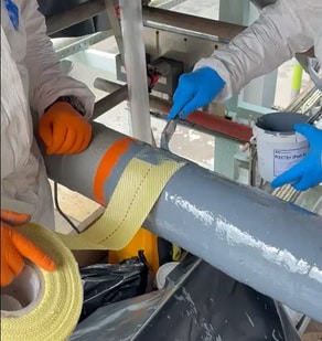 2. Composite wrapping: Four layers of R4D were wrapped around the defected area.