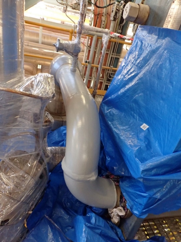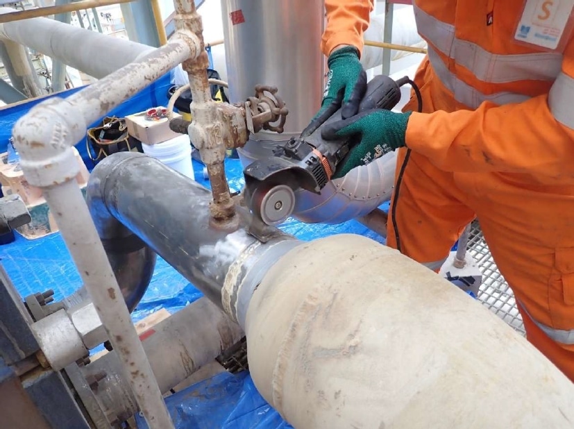 In June 2025, a leak was detected on a weld of a 6.6" pipeline transporting MDEA (Methyldiethanolamine) at 150°C. Considering the chemical aggressiveness of MDEA and the high operating temperature, a robust repair solution was required. 3X ENGINEERING (3X), through its local distributor, implemented a composite repair using REINFORCEKIT® 4D (R4D) with high-temperature resin.