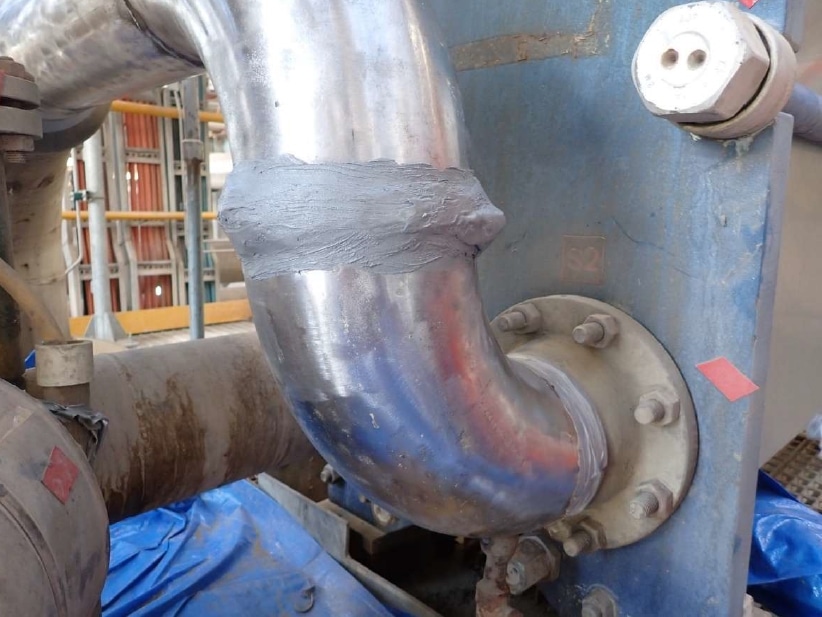 - A 3X high-temperature, chemically resistant filler was applied to the defective weld area to restore geometry and ensure load transfer.