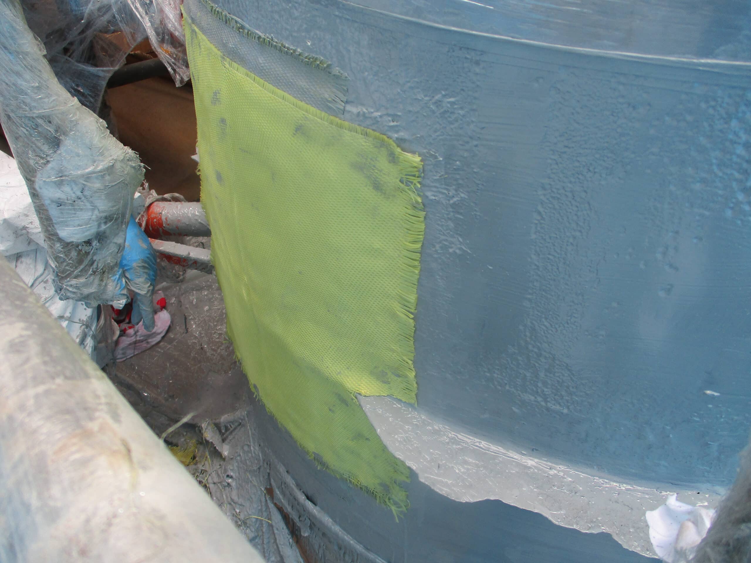 5. Composite repair finalization: To complete the repair, a last layer of resin was applied as finishing stage and an id plate was installed for traceability.