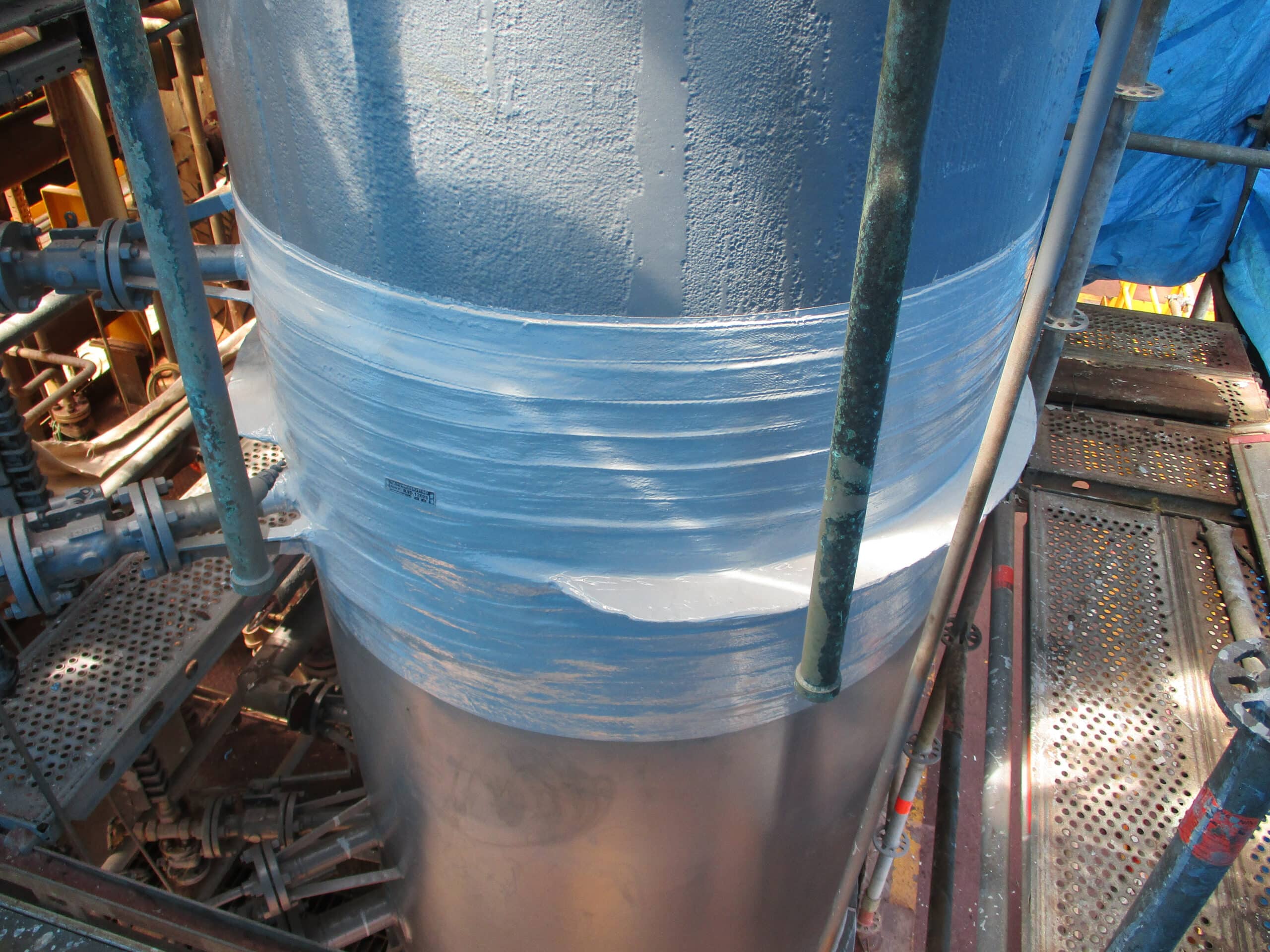 The objective of the repair performed in August 2021 by 3X ENGINEERING (3X), and its local distributor was to reinforce a 48" TEG flash vessel located on FPSO and suffering from external corrosion on 2 separate areas and through-wall defect. This job was performed using our composite solution dedicated to pressure vessel reinforcement called REINFORCEKIT® PATCH (combination of several Kevlar® patches and bi-component epoxy resin).