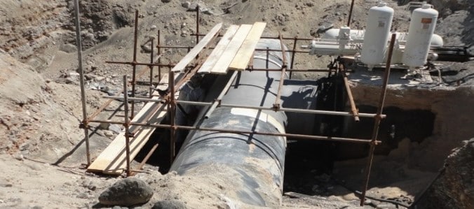 The objective of the repair performed by 3X ENGINEERING and its local distributor was to reinforce a 56” pipe damaged by a longitudinal crack.