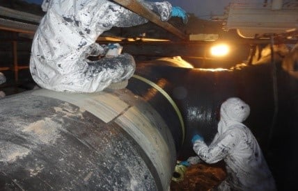 3. Wrapping process was then started on the straight part using Kevlar® and 3X resin 6 layers of composite over 2.4m were applicated. On the branch 8 layers were implemented to secure the defected area.