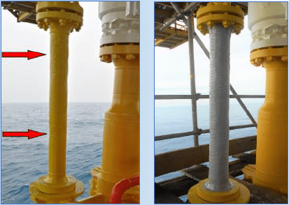 The objective of the repair, performed by 3X ENGINEERING (3X) local distributor, was to reinforce 6 areas suffering from existing external corrosion and prevent from any potential internal corrosion.