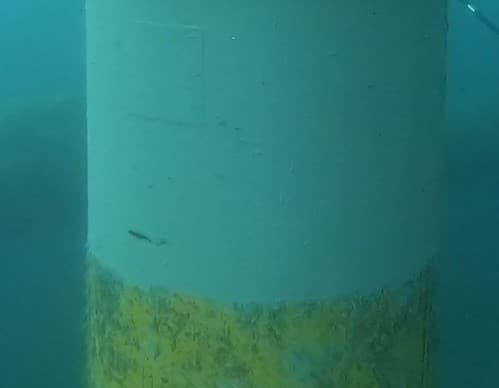 Underwater preliminary operations were performed. Sea life and temporary metallic patches previously applied were removed prior to surface preparation (surface profile superior to 60µm). This step, performed using grit blasting, is required for a good bonding between the steel and the composite. Water temperature measurements were performed to make sure they met 3X requirements for composite application.