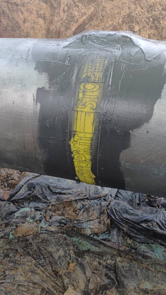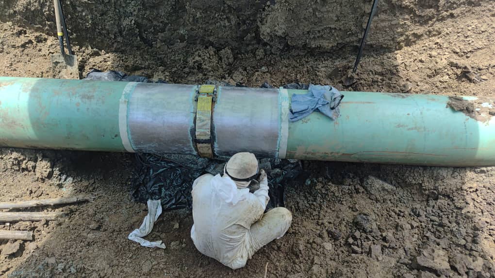 The objective of this job, performed in May 2025 by 3X ENGINEERING (3X) local distributor was to seal online a leakage on 20" pipeline transporting naphtha with high pressure of 915psi. To quicky stop the leak, it was decided to use 3X emergency leak sealing system STOPKiT® and then secure it as long-term solution by overwrapping the STOPKiT® with the composite repair REINFORCEKiT® 4D (R4D) made of Kevlar® tape and epoxy resin.