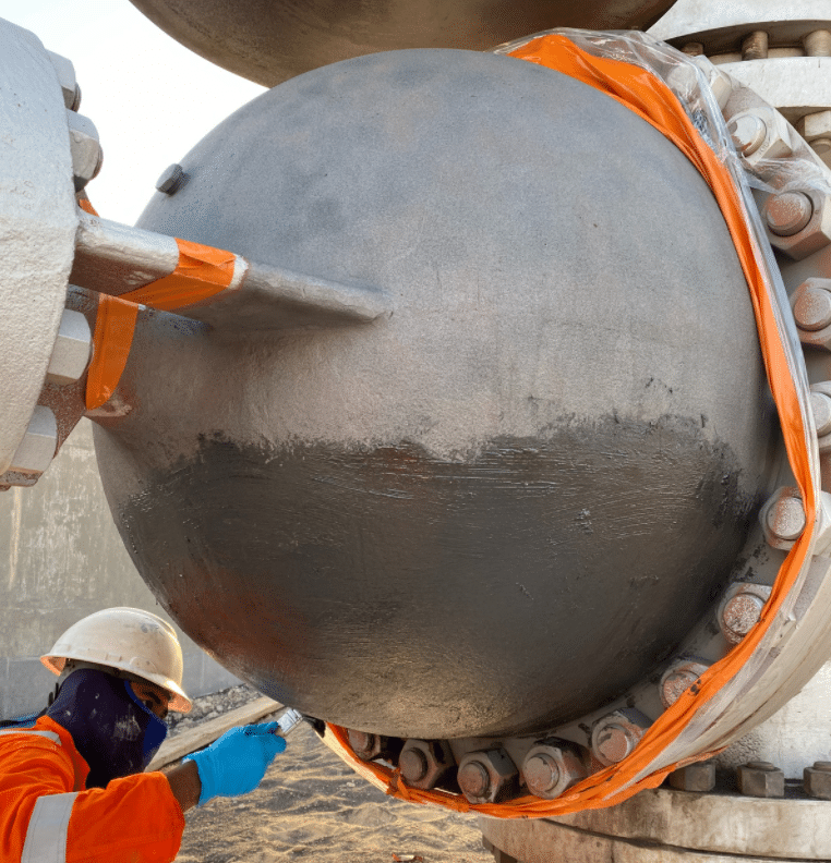 The objective of the repair, carried out by 3X ENGINEERING (3X) and its local distributor WISKOTS was to reinforce 3 valves with ball geometry suffering from internal corrosion. To restore valve integrity and prevent further deterioration, it was decided to repair the defected areas using REINFORCEKiT® 4D.