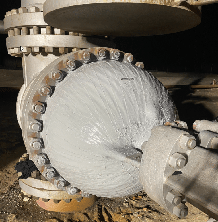 According to ASME PCC-2 standard and 3X calculations, it was decided to apply REINFORCEKiT® 4D using R3X150+ resin (specifically dedicated to internal and external corrosion at high temperature). From 6 to 8 layers of composite were determined to reinforce the valves.