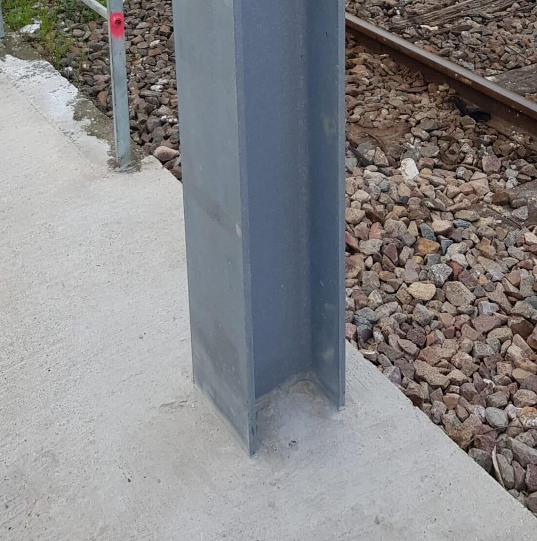 The objective of the job performed by 3X ENGINEERING (3X) specialists in February 2022 was to protect 2 new catenary supports (HEA beams) from corrosion. These structures are located near a railway line. To this purpose, REINFORCEKIT® STRUCTURE product was installed on the base of these beams as protection.