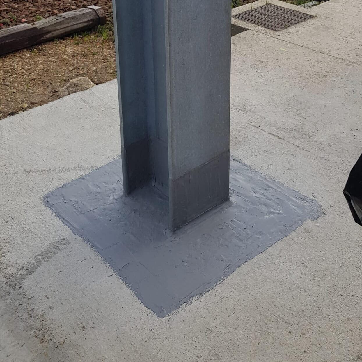 - Waterproofing filler application: Elastomeric filler was applied on the junction between the structure and the support to avoid water infiltration.