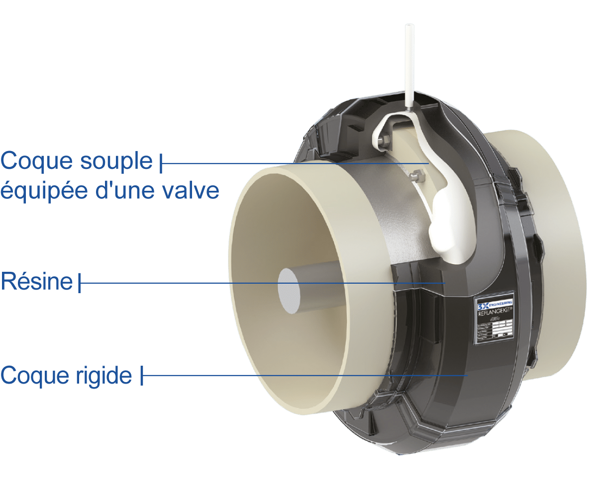 Colmatage de la fuite par la mise en place d’une coque souple et d’une valve