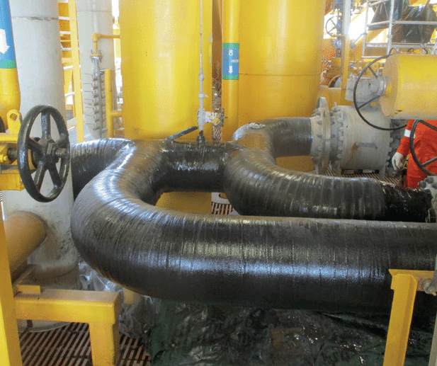 Le système peut être installé sur des irrégularités telles que des soudures ou des chancres de corrosion, ce qui en fait le meilleur système pour réparer les défauts traversants avant enveloppement composite et selon les normes ISO 24.817 et ASME PCC-2.