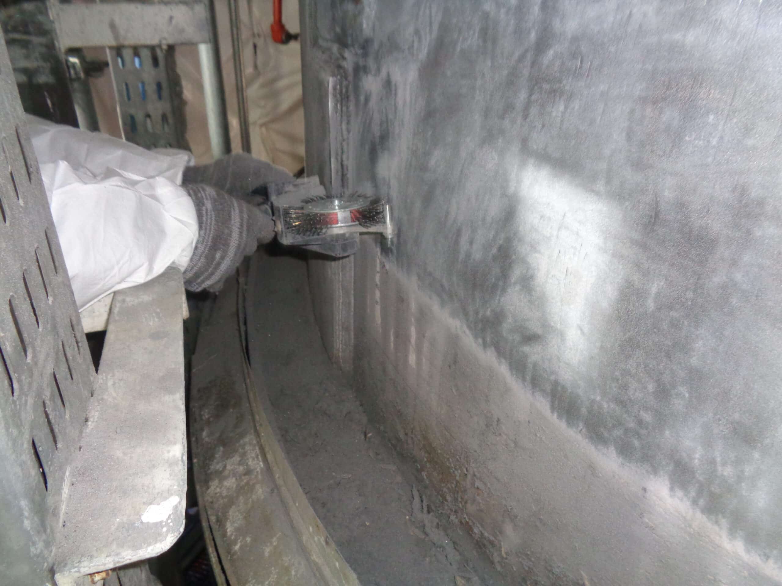 In accordance with ASME PCC-2 standard, the repair design required the application of 14 layers of REINFORCEKIT STRUCTURE, made of Kevlar® tape impregnated with 3X high-temperature epoxy resin. Surface preparation was performed using Bristle Blaster® machine to achieve a surface roughness greater than 60 µm Rz. The preparation was carried out around the entire repair area to ensure optimal adhesion and effectiveness of the composite wrapping. Hygrometric conditions were then verified and the surface was cleaned prior to reinforcement wrapping.
